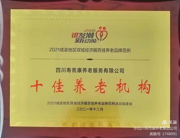 熱烈祝賀四川壽而康養老服務(wù)有限公司董事長(cháng)兼總裁曹野先生,榮獲“2021成渝地區雙城經(jīng)濟圈十大養老領(lǐng)軍人物”稱(chēng)號!熱烈祝賀四川壽而康養老服務(wù)有限公司,榮獲“2021成渝地區雙城經(jīng)濟圈十佳養老機構”稱(chēng)號!