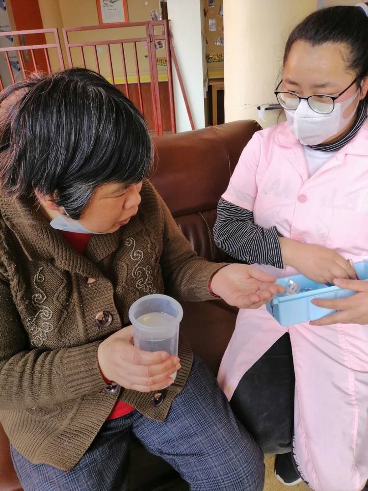親屬委托的藥物,她管理得井井有條;重點(diǎn)老人服藥,她都親自關(guān)照;哪位老人吃飯“不乖”,她總是象孫女般地“哄”、“喂”;“七彩課堂”上,她是循循善誘的老師;與爺爺、奶奶們互動(dòng),她是開(kāi)心的孩子;不論值班與否,每晚她都會(huì )巡看老人1~2次,看看婆婆、爺爺睡得好不好……;